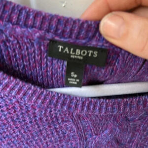 Talbots Cable Knit Sweater Back Zip S petite Purple Beautiful knit