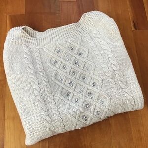 Talbots Cable Knit Sweater Jewel Embellished Small EUC