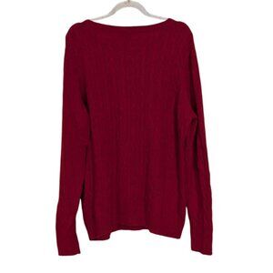 Talbots Cable Knit Sweater Womens Size XL Red Lambswool Blend Button Detail Knit
