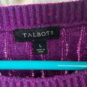 Talbots Women’s Size Large Cable-Knit Sweater in Vibrant Fuchsia Purple with colorful flecks