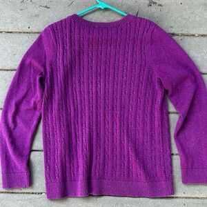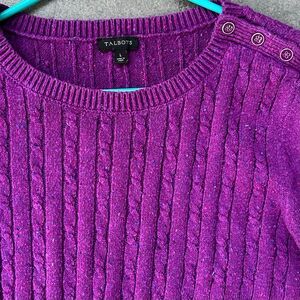 Talbots Cable Knit Sweater in Vibrant Purple Size Large Preloved Button Shoulder