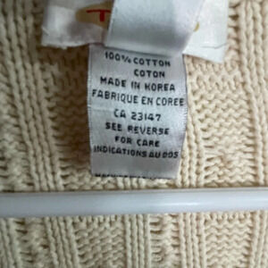 Talbots White Cream Cable Knit Sweater Jacket Women Sz Medium Zip Up 100% Cotton