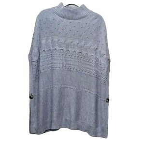 Talbots Cable knit Oversized Poncho Sweater Sz S Grey Side Button Closure N67