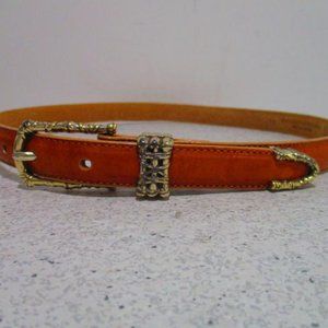 *Talbots Camel Golden Brown Croc Bamboo Motif Silver Accents Belt