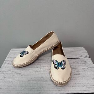 Talbots Canvas Embroidered Butterfly Slip On Shoes