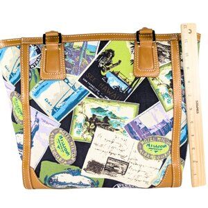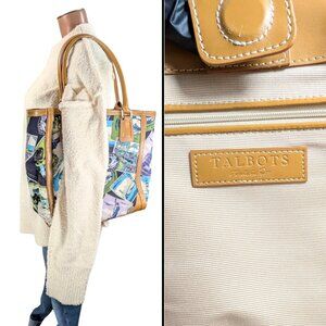 Talbots Canvas & Leather Travel Postcard Large Lined Tote Bag Novelty Passport