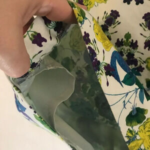 Talbots sheath dress women’s size 8 petite. Beautiful all over mirrored floral print with cabbage roses in yellow, blue and green. Back zip. Cap sleeves. Lined. Missing fabric content tag, website says it’s cotton and linen blend fabric with polyester lining. Preowned.