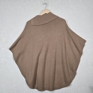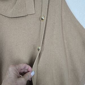 Talbots Cape Poncho Sweater sz M Tan Cotton Blend Cowl Neck. Decorative Buttons. Rounded hem.