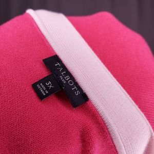 Talbots Cardigan Sweater Women 3X Pink V-Neck Button Long Sleeve Pastel Contrast Trim Barbiecore Preppy Classic