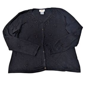 Talbot's Cardigan Beaded Black Silk Cashmere Button Up Sweater Medium Preppy
