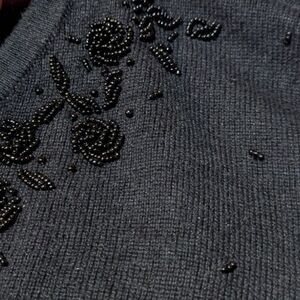 Talbot's Cardigan Beaded Black Silk Cashmere Button Up Sweater Medium Preppy
