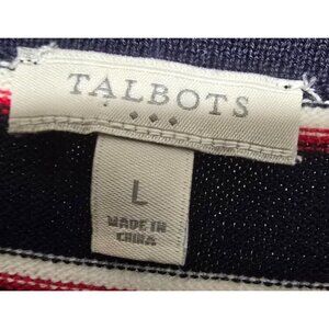 Talbots Cardigan L Button Up Parisian Stripes Je T'aime Embroidered Breathable