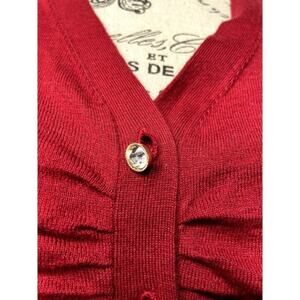 In Good Condition, this Beautiful sweater has rhinestone buttons made from Marino Wool. No rips or tears. Please see the pictures as part of the description and message me with any questions.