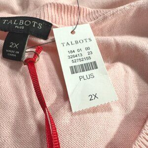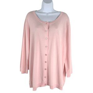 Talbots Cardigan Sweater 2X Pink Cotton Rayon Preppy Solid NWT CJ-2180
