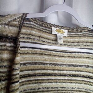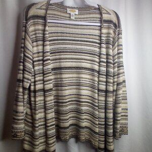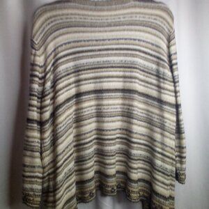 Talbots Cardigan Sweater 2X Women Button Up 3/4 Sleeve Stripe Brown Black