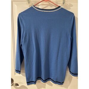 Talbots Cardigan Sweater Cotton Blend Knit Top Blue White Trim Size M