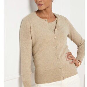 This pretty cardigan is from Talbot's (black label) in a women's size medium. Made of cotton, polyester and metallic threads. Machine washable. Gold in color with shimmer. Goldtone buttons down the front.