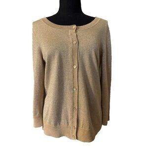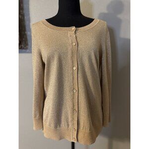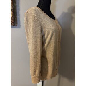 Talbots Cardigan Sweater Medium M Gold Metallic Shimmer Lightweight Cotton Mix