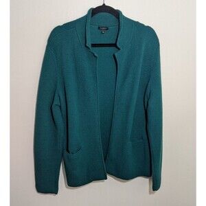 Talbots Cardigan Sweater Open Front Knit Ribbed Casual Large