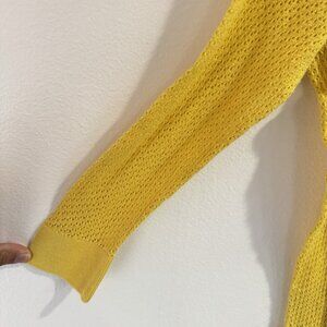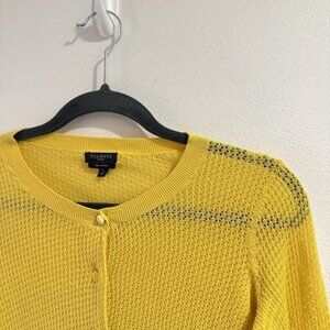 Talbots Cardigan Sweater SP Petite Pima Cotton Yellow Open Knit Button Front