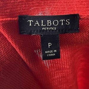 Talbots Cardigan Sweater Size P / S Red Open Front Linen Blend Solid Womens