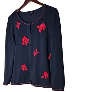Talbots Cardigan Sweater Sz 1X 16 18 Strawberries Fruit Embroidered Blue Red