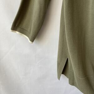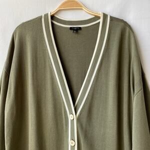 Talbots elevated Y2K cardigan sweater in sage green with contrast white trim