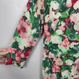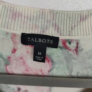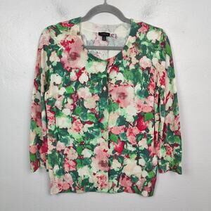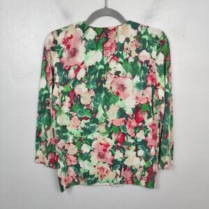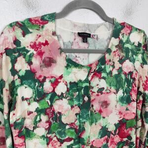 Talbots Cardigan Sweater Womens Medium Green Pink Floral Button Up Preppy