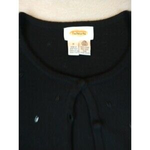 Talbots Cardigan Sweater Women's Medium Wool Black Bead Sequin Button. See pics for condition and measurements