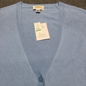 Talbots Cardigan Sweater Womens Petite Small Blue Long Duster V Neck One Button