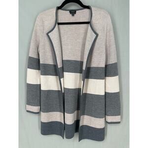 Talbots Cardigan Sweater Womens Small Beige Gray Striped Pure Merino Wool Cozy