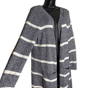 Talbots Long Cardigan Sweater Womens X Striped Open Front Pockets Capsule Plus