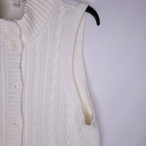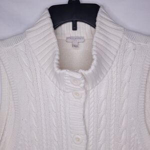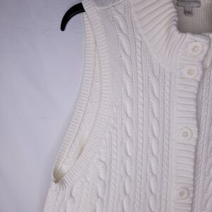 Talbots Cardigan Sweater XLP White Cable Knit Vest
