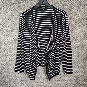 Talbots Cardigan Womens MP Petite Medium Black Striped Knit Open Front Ladies