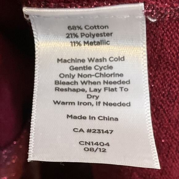 Talbots Cardigan Womens Size Petite L Burgundy Metallic Jewel Button Up