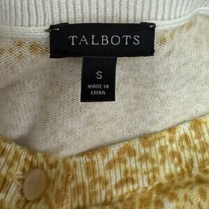 Talbots Cardigan Women's Small Yellow White Animal Print Knit Button Up Sweater