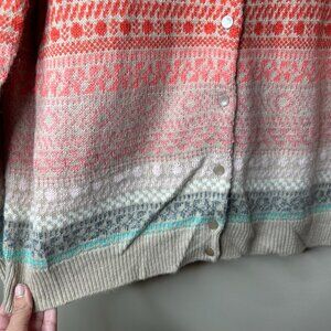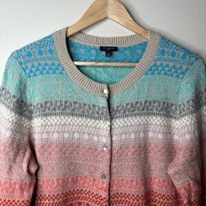 Talbots Cardigan Womens Sz X Rainbow Fair Isle Lambs Wool Mohair Blend Nordic