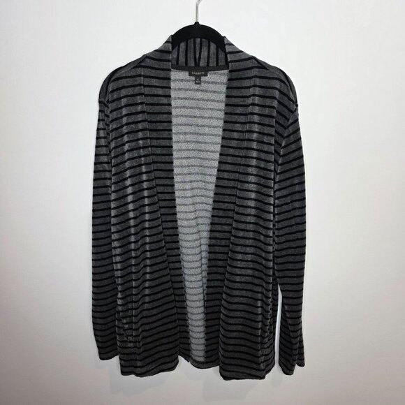 Talbots Open Front Striped Velvet Cardigan with Pockets