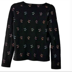 Talbots Cashmere Black Floral Pullover Sweater Lightweight Women Size M