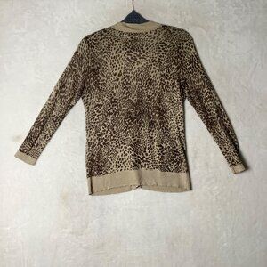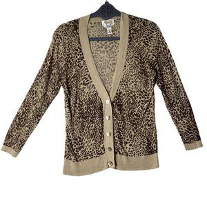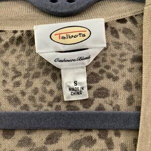 Talbots Cashmere Blend Animal Leopard Print Cardigan Sweater Women Small Brown