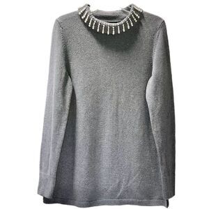 Talbots Cashmere Blend Sweater with Pearl Detailing in Grey/Cream Women’s M