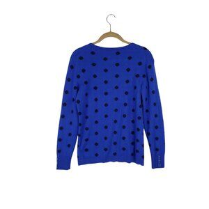 Talbots Womens Size Small Royal Blue Polka Dot Button Cuff Crew Neck Sweater