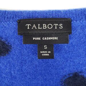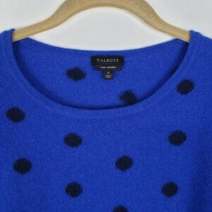 Talbots Cashmere Button Cuff Crew Neck Sweater Royal Blue Polka Dot Size Small