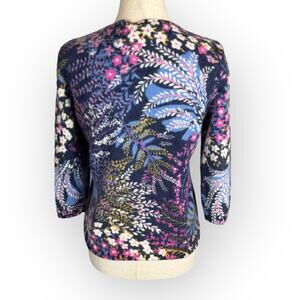 Talbots Pure Cashmere Floral Print Sweater With 3/4 Sleeves In Rich Multicolor Botanical Pattern. Soft Lightweight Knit With Crew Neckline And Vibrant Floral Design.