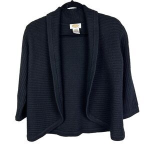 Talbots Cashmere & Silk Quarter Slv Open Front Cardigan Sweater Black Petite S