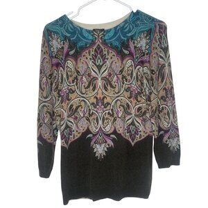 Talbots Cashmere Sweater Womens Size S Brown Floral Fall Casual