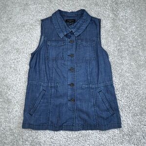Talbots Casual Chambray Vest. Button Front Drawstring. petite medium