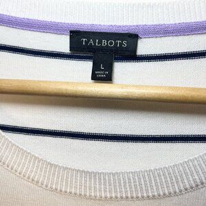 Talbots Cat Embroidered Striped Short Sleeve Sweater – Size Large