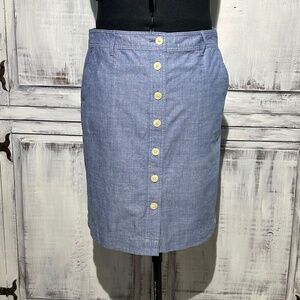 Talbots Chambray Button Down A-Line Skirt Women's 10 100% Cotton
