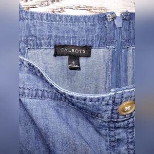 Talbots Chambray Button Down Dress size 6 Denim Pockets Sundress